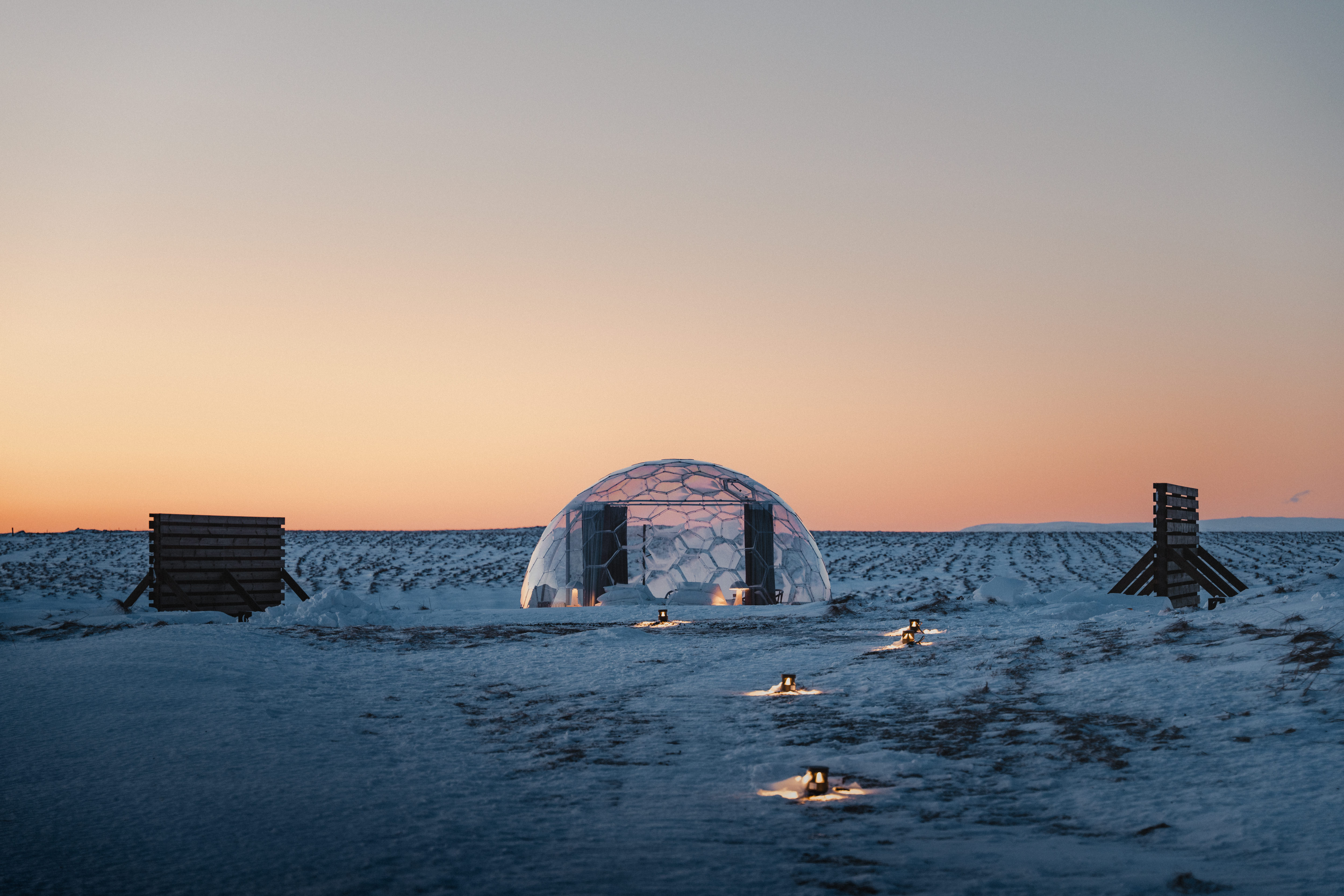 Our igloos are nested amid the picturesque landscapes of Hella, Iceland.